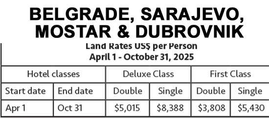 Upon arrival in Belgrade, you will be met and transferred to your hotel. The rest of the day is free to relax or to begin exploring the Serbia’s vibrant capital. (B)