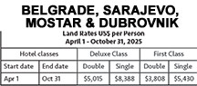 Today learn about Sarajevo’s unique history and empires. See all the city highlights; Stroll through the scenic Ottoman-era Bascarsija Square & the Husref bay’s mosque. Admire the Austro-Hungarian architecture that splashes the city. See & learn more about the famous Latin Bridge and the beginning of World War I and visit to the war Tunnel museum - Tunnel of Hope. (B)