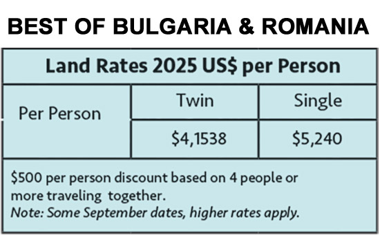 During this 10 night/11 day independent private tour, you will explore the highlights of Bulgaria & Romania with a private driver and guides throughout. Departure is any time of the year.