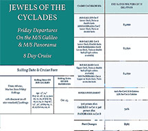 Meals: Buffet breakfast and 1 meal daily, including a Welcome Cocktail, a Greek night Evening, fun BBQ (weather permitting), and Captain’s Dinner
