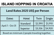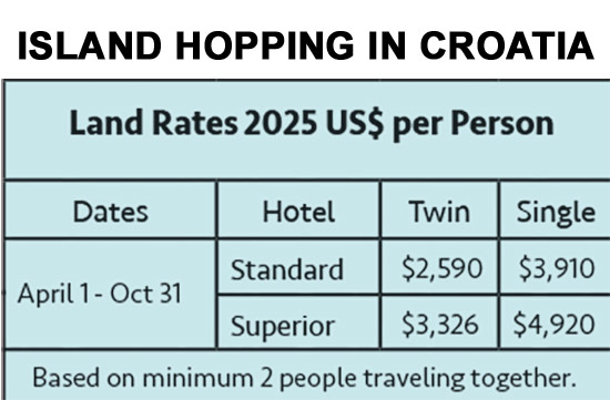 * Please note: the ferry from Korcula to Dubrovnik operates daily from June to September. If the ferry is not available, a private car transfer is provided for an additional charge