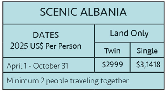 A private guided tour through the most scenic cities in Albania including Tirana, Pogradec, Korca, Gjirokastra, Saranda, Vlore, Berat.