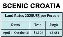 Transportation: Deluxe Air-conditioned car or minivan between all cities. Ferry between Split -