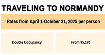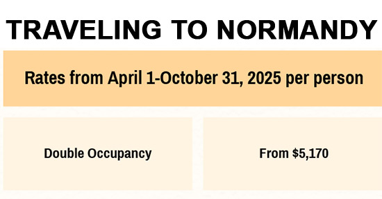 Breakfast at the hotel. Today your private driver will take you to Deauville and Honfleur. Deauville is a chic seaside resort in Nor-mandy and is considered one of the most spectacular cities in France. You will visit the Chateau de Breuil and enjoy a calvados tasting. Make your way back to Bayeux and overnight at your hotel.