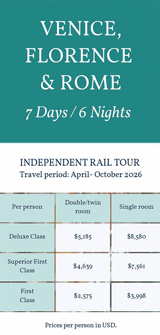 Make your own way to the Santa Lucia train station to take the train to Florence. Upon arrival in Florence, make your own way to your hotel & the rest of the day is free. (B)