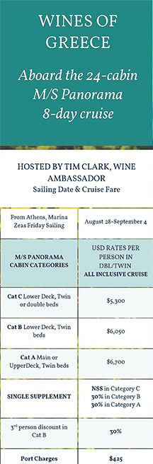 8 days tour from Athens to Hydra and Mykonos, Santorini and back to Athens. Taste the Greek wines in famous wineries with Tim Clark, wine ambassador.